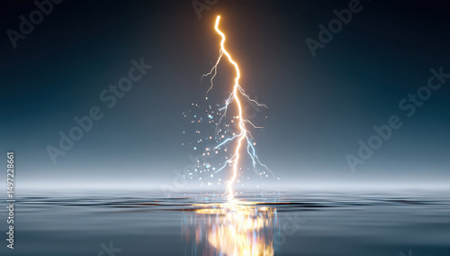 Dramatic Lightning Strikes Over Tranquil Water at Night