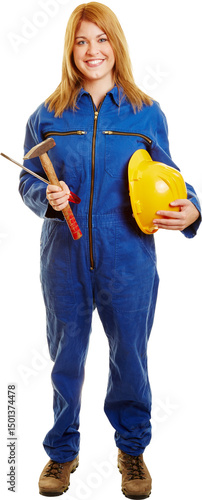 Frau als Bauarbeiter im Blaumann