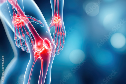 Illustration of human anatomy highlighting joint inflammation and pain locations