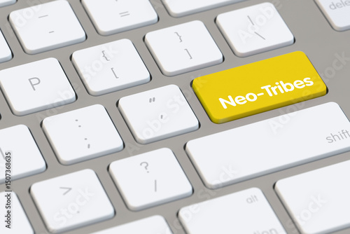 Tastatur mit Schriftzug „Neo-Tribes“ als Konzept