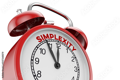 Roter Wecker mit Schriftzug Simplexity als Konzept