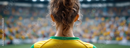 Female soccer player stands in a stadium filled with expectant fans