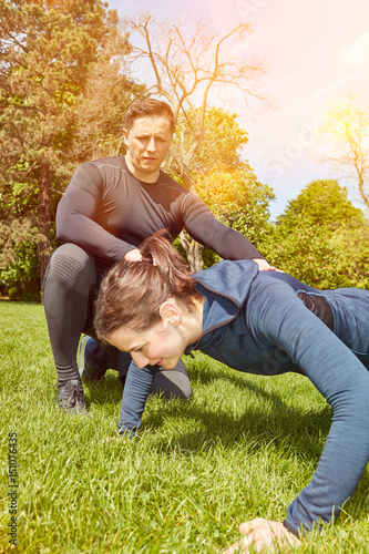 Frau macht Push-Up als Fitnesstraining im Sommer