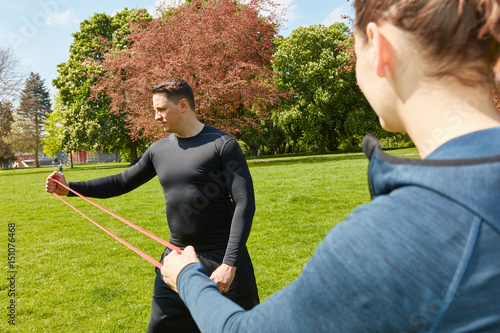 Couple fitness training at the park
