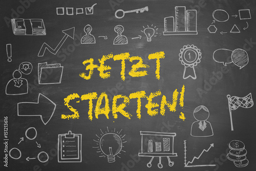 Start now! Konzept auf Tafel
