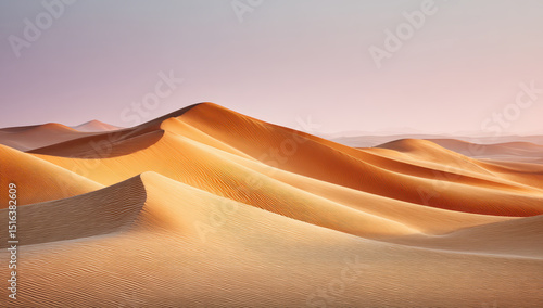 Golden desert dunes at sunset with radiant skies and soft sandy textures