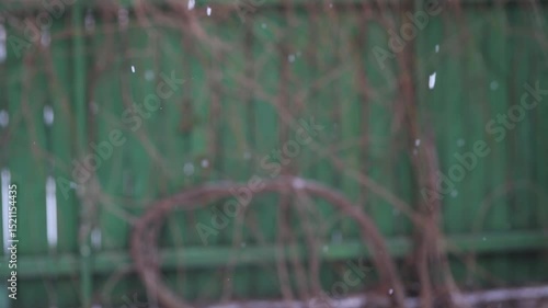 Close-up of falling snow before dark background with shallow depth of field: a Winter scene.