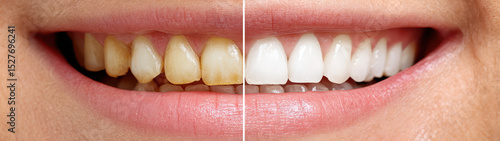 Before and after comparison of teeth whitening transformation.