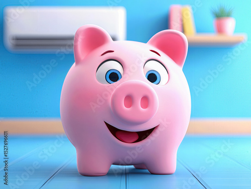 Piggy bank under an umbrella with coins symbolizing financial security and savings protection on white background