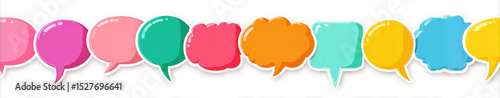 Set of colorful speech bubble doodle stickers in various shapes on transparent background
