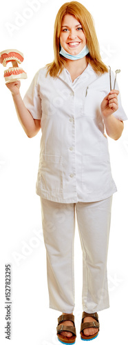 Frau als Zahnärztin mit Gebiss