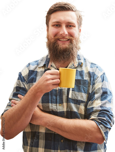 Hipster Schreiner mit Bart macht eine Kaffeepause
