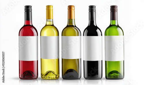 Three wine bottles in shades from clear to deep amber on a light gradient background