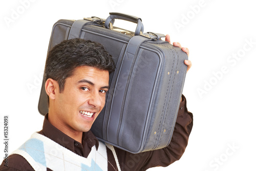 Junger Business Mann mit Rollkoffer
