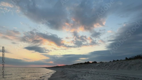 Sunset serenity: gentle waves on the beach of Graal-Müritz, Germany.