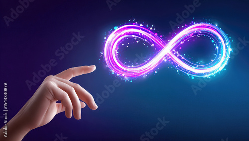 Glowing colorful light trails creating an abstract infinity shape on dark background