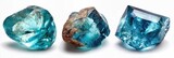 Three beautiful blue crystal gemstones displayed against a bright white background