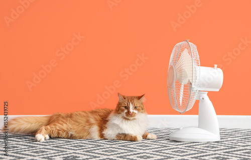 Adorable orange tabby cat sitting with paw raised in salute