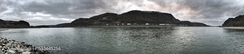 Panorama shot of river Rhine in autumn with trees