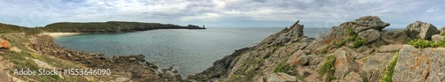 Panoramic view of coastal cliffs with rocky shores and a tranquil bay