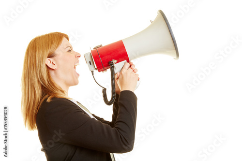 Business Frau schreit in Megafon