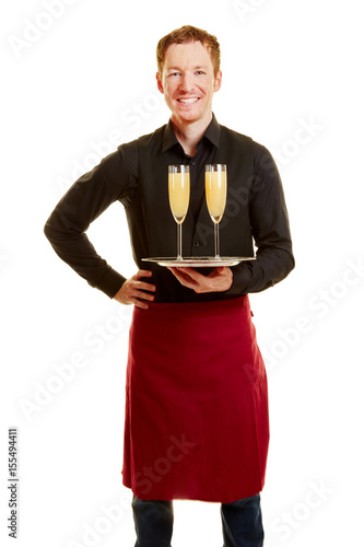 Koch und Kellnerin vor Tafel mit Muskel Armen