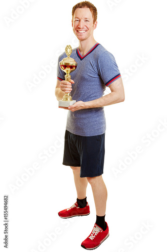 Mann als Sieger beim Sport mit Pokal