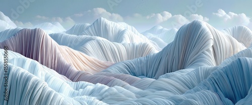Surreal abstract mountains resembling soft flowing fabric under delicate skies