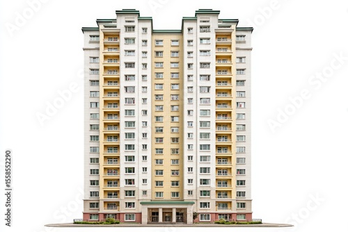 High-rise apartment building with beige facade and symmetrical architecture