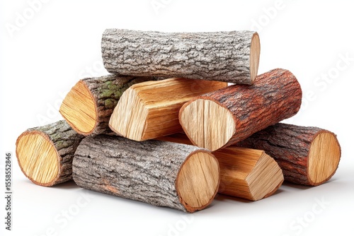 PNG four distinct wooden logs on a white background showcasing natural textures
