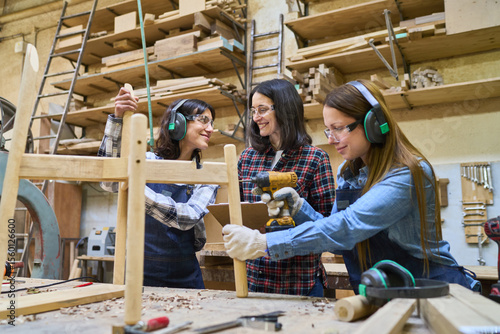Teamwork in a lumberyard with apprentices and skilled mentor