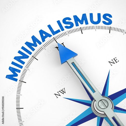 Blaue Kompass Nadel zeigt auf Schriftzug Minimalismus