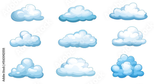 PNG set of artistic cartoon-like cloud illustrations with different styles and shapes