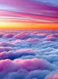 Colorful sunset over fluffy pink and purple clouds above a tranquil horizon in a serene sky