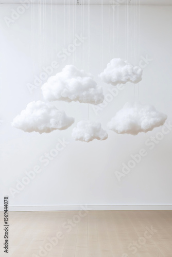 Creative cloud decorations suspended in artistic minimalist indoor setting