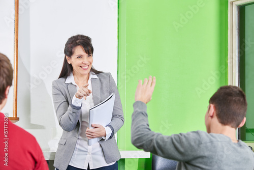 Teacher points with her finger