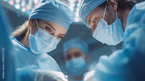 Ärzteteam der Chirurgie arbeitet konzentriert zusammen