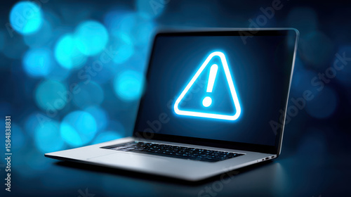 Smartphone with glowing red warning sign on screen placed on a dark wood table