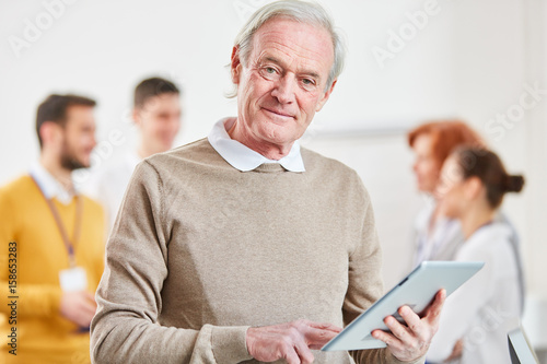 Senior als Berater mit Tablet Computer