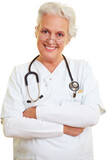 Lächelnde Ärztin verschränkt die Arme