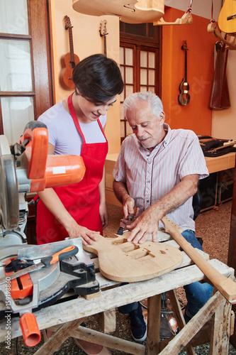 Gitarrenbauer Lehrling zusammen mit Ausbilder