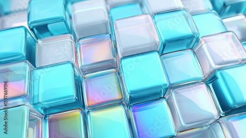 Futuristic abstract background with blue hexagonal shapes and modern geometric patterns in a sleek 3D rendering.