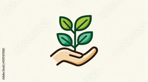 Silhouette of a hand holding a green leaf plant symbolizing growth and care