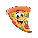 Happy cartoon pizza slice with big eyes and cheerful toppings for fun food branding moments
