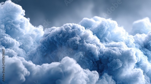 Close-up of realistic soft white clouds with textured details and atmospheric depth