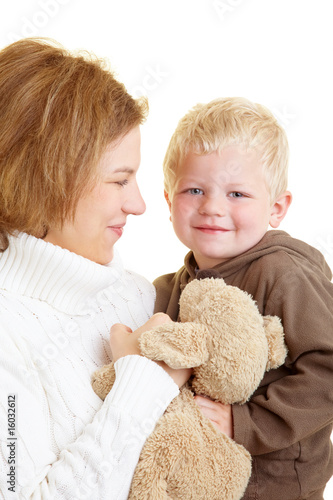 Mutter gibt ihrem Sohn einen liebevollen Kuss