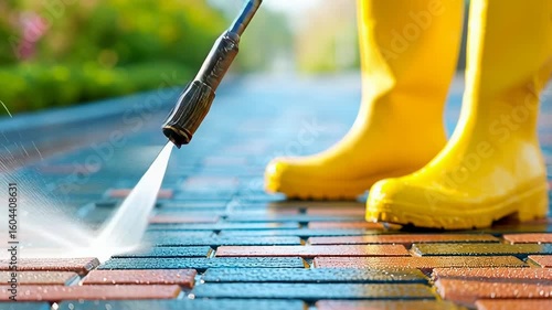Power Washing Paver Brick Pavement Cleaned in 4K 60fps