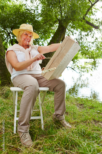 Seniorin malt Bild mit Wasserfarben