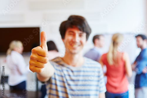 Daumen Hoch Silhouetten vor Business Portraits als Teamwork Konzept
