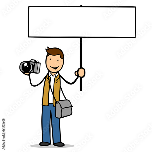 Cartoon Agent oder Spion vom Geheimnis mit einem leeren Schild